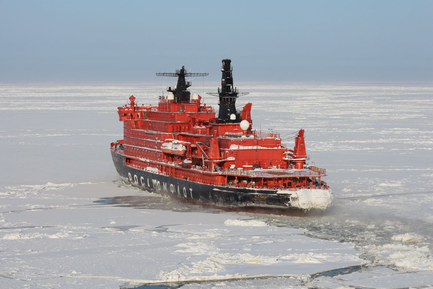 The nuclear icebreaker 50 Years of Victory — a vessel worth $2 billion. Two nuclear reactors, a team of polar scientists, the midnight sun, and a silence found nowhere else on Earth.